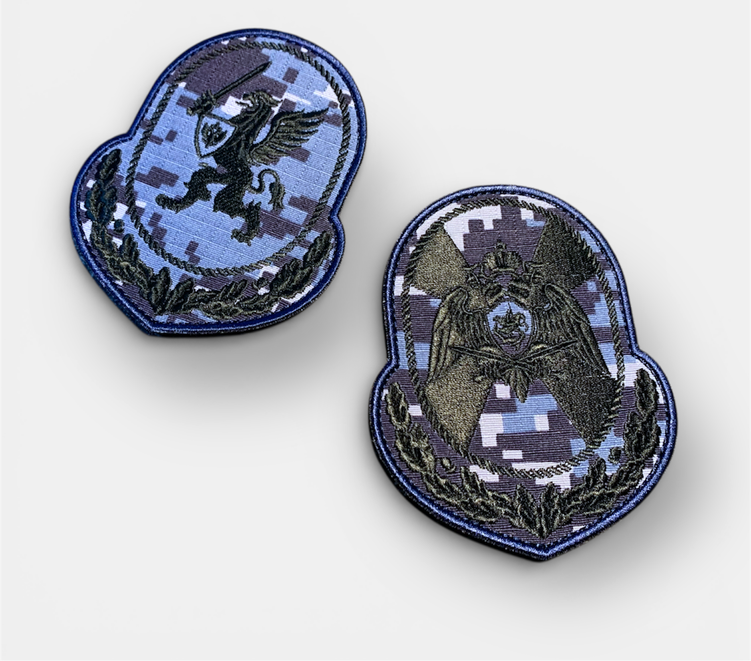Комплект нарукавных знаков для сотрудников центрального аппарата Федеральной службы войск национальной гвардии РФ. Изделия полностью соответствуют регламенту Росгвардии и предназначены для ношения на форменной одежде.