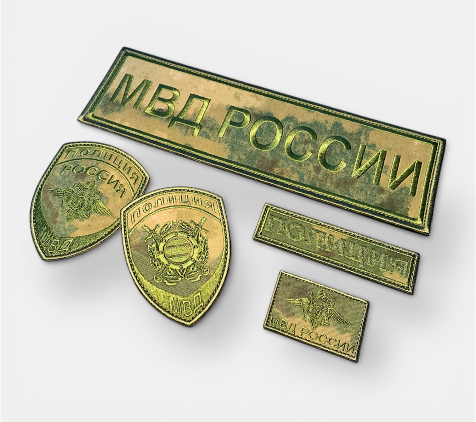Профессиональный комплект нарукавных и нагрудных знаков со спиной для сотрудников полиции в камуфляжной расцветке «Мох». Изделие соответствует требованиям нормативных документов МВД РФ и предназначено для ношения на полевой форме, тактическом снаряжении и бронежилетах в условиях естественной природной среды. Комплект рассчитан на оперативные подразделения, выполняющие задачи в полевых и лесных условиях.
