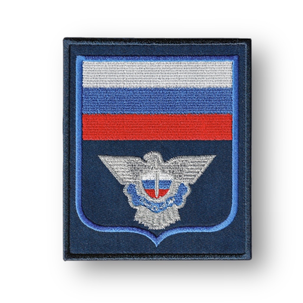 Вышитая нарукавная нашивка в классическом ведомственном исполнении. Контрастный серебряный орёл подчёркивает геральдическую символику, а аккуратный синий кант формирует чёткий завершённый контур и придаёт изделию строгий профессиональный вид.