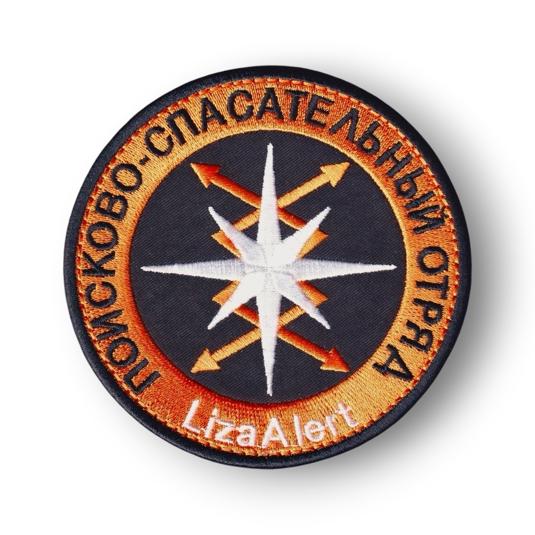 Нашивка на рукав «Поисково-спасательный отряд ЛизаАлерт – Связь» диаметр 100 мм