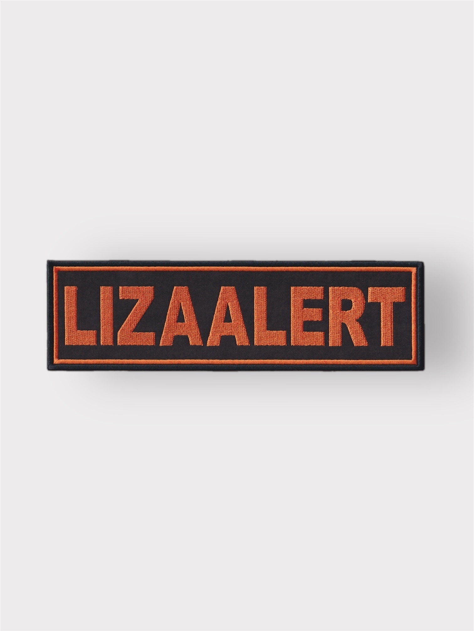 Крупный идентификационный шеврон для размещения на спинке куртки, жилета, ветровки и форменной одежды. Используется участниками поисково-спасательного отряда ЛизаАлерт для чёткой визуальной идентификации на мероприятиях и в полевых условиях.