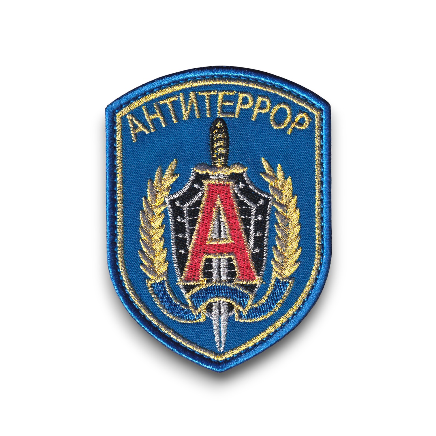 Нашивка ( Шеврон ) Тактическая Альфа Антитеррор Васильковый Фон / Металлизированная вышивка  | ATRIBUTICASTORE.RU