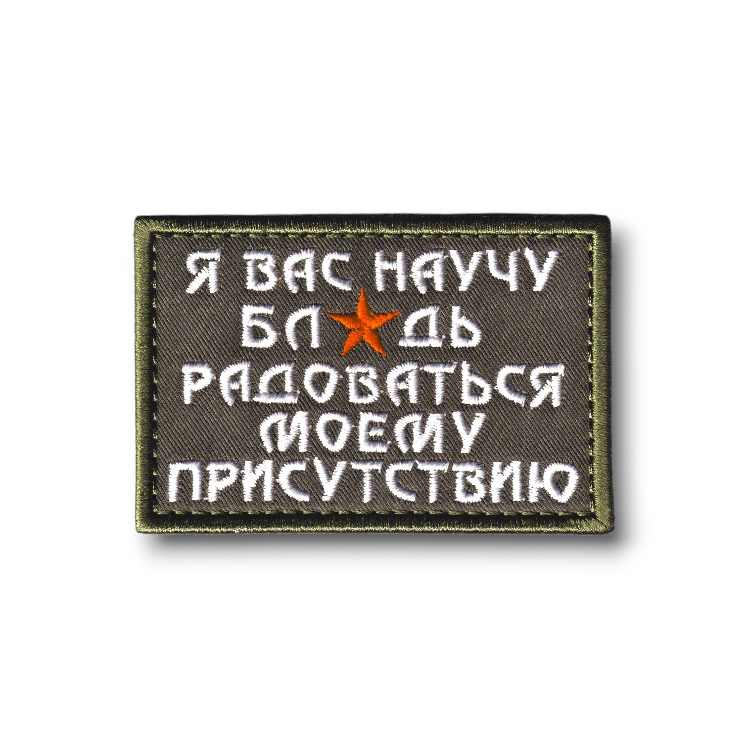 Нашивка ( Шеврон ) Тактическая Я Вас Научу Радоваться 75х50мм Оливковая